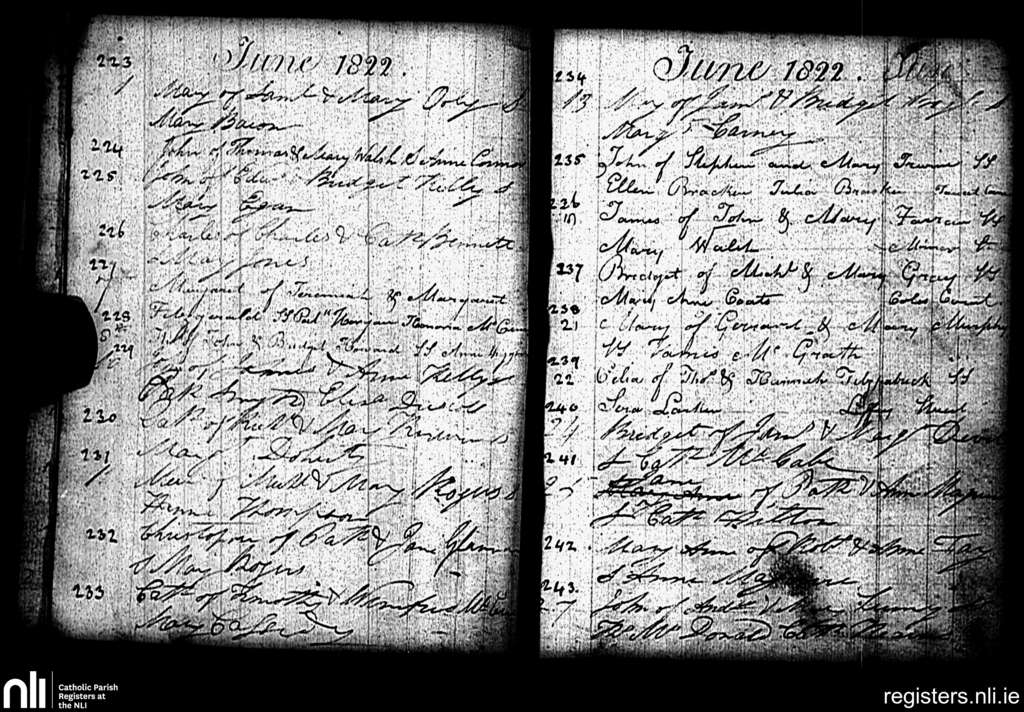 St. Paul's, Dublin city; County of Dublin; Archdiocese of Dublin. Baptisms, June 1822