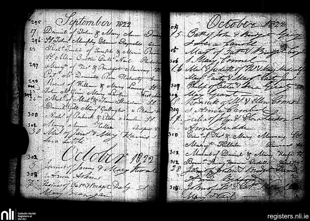St. Paul's, Dublin city; County of Dublin; Archdiocese of Dublin. Baptisms, Sep. 1822 to Oct. 1822
