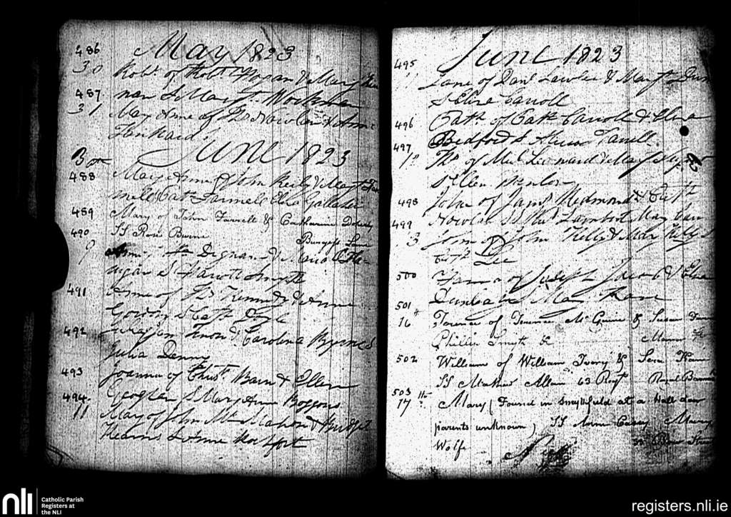 St. Paul's, Dublin city; County of Dublin; Archdiocese of Dublin. Baptisms, May 1823 to June 1823