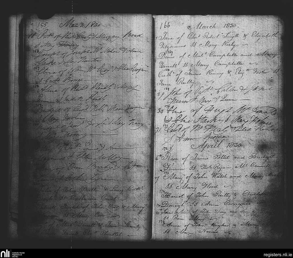 St. Paul's, Dublin city; County of Dublin; Archdiocese of Dublin. Baptisms, Mar. 1830 to Apr. 1830