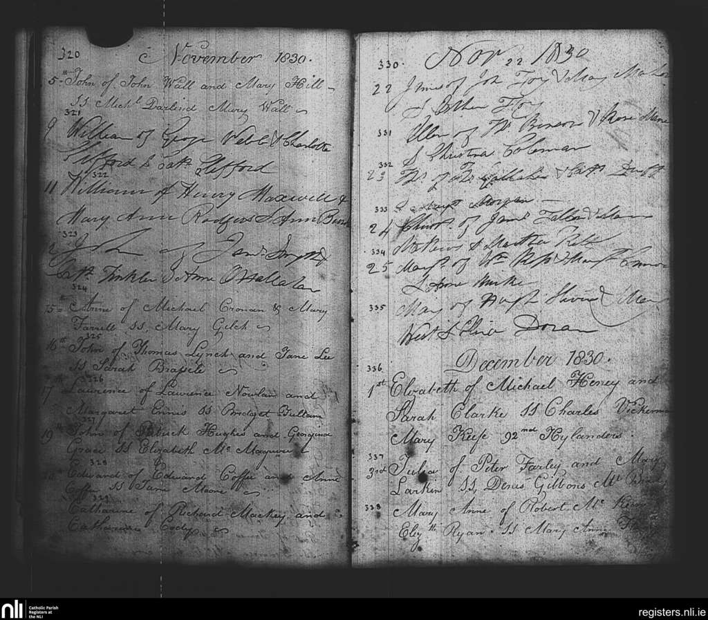 St. Paul's, Dublin city; County of Dublin; Archdiocese of Dublin. Baptisms, Nov. 1830 to Dec. 1830