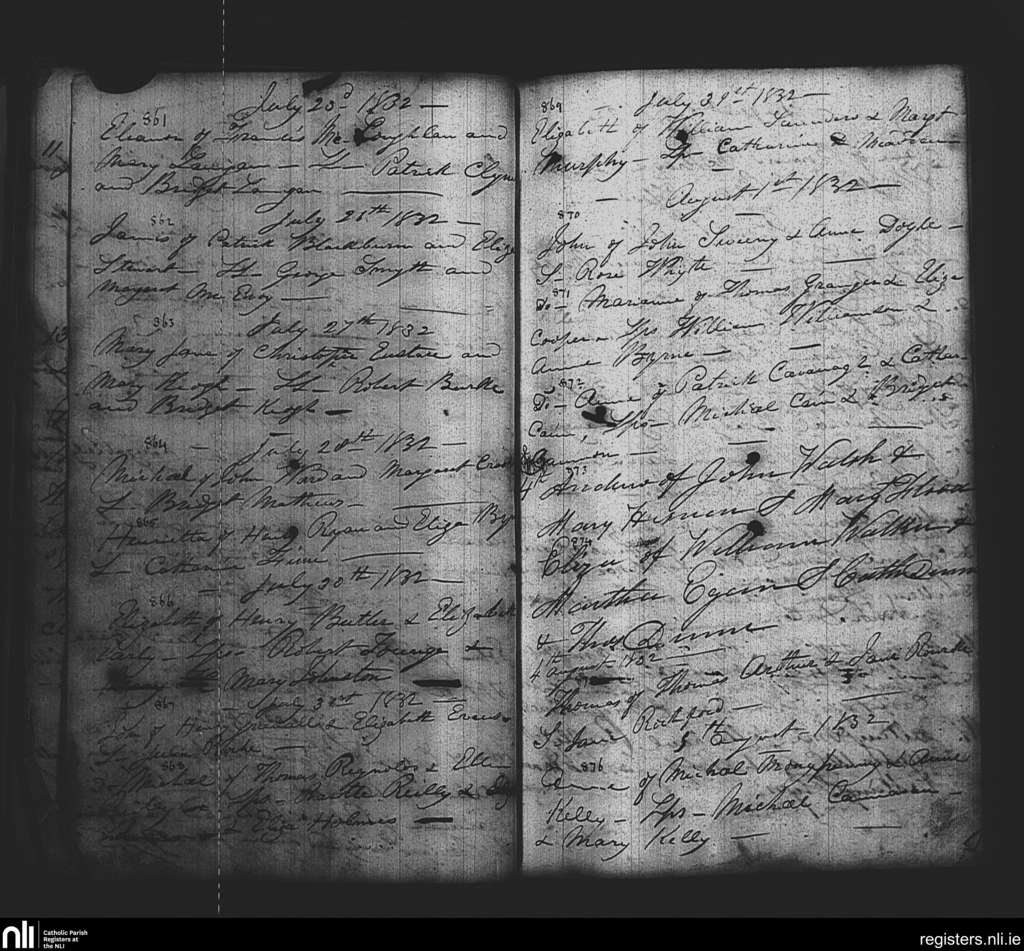 St. Paul's, Dublin city; County of Dublin; Archdiocese of Dublin. Baptisms, July 1832 to Aug. 1832