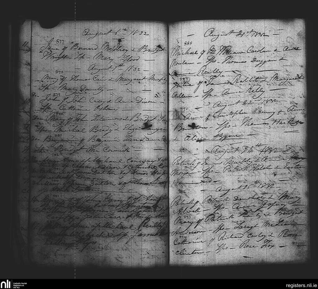St. Paul's, Dublin city; County of Dublin; Archdiocese of Dublin. Baptisms, Aug. 1832