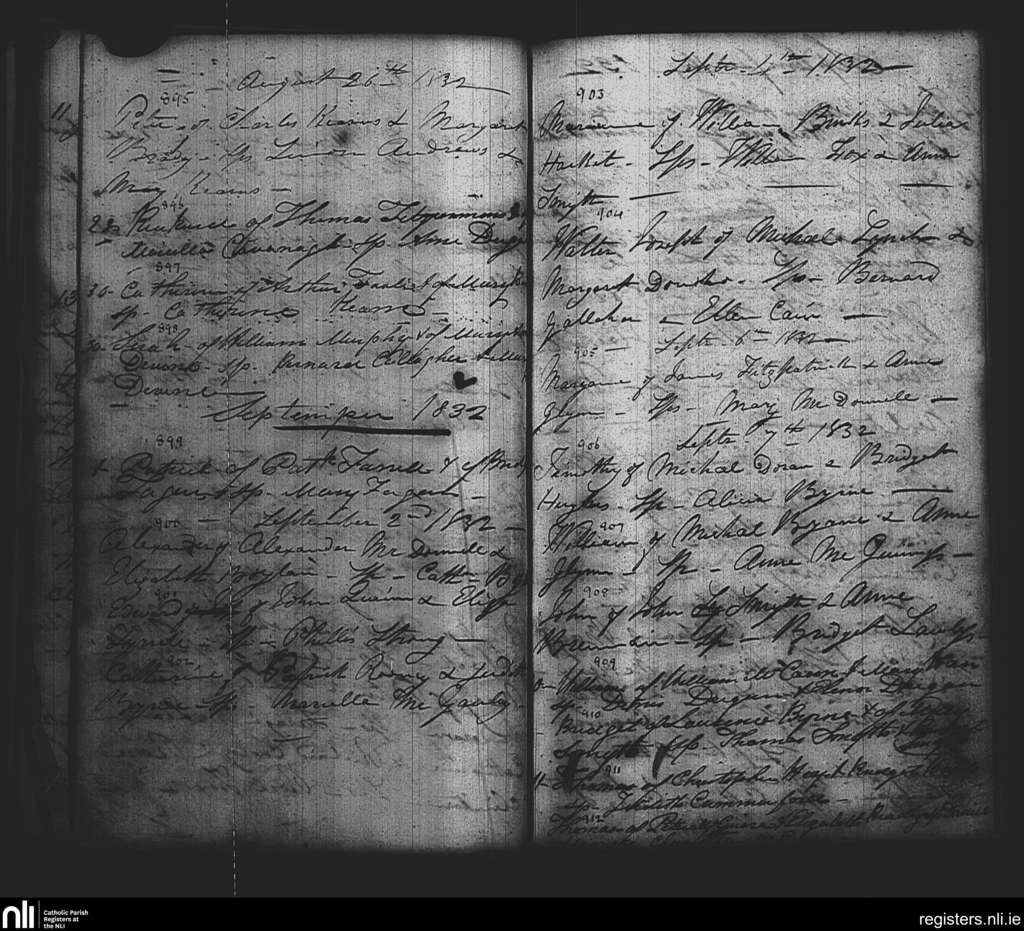 St. Paul's, Dublin city; County of Dublin; Archdiocese of Dublin. Baptisms, Aug. 1832 to Sep. 1832