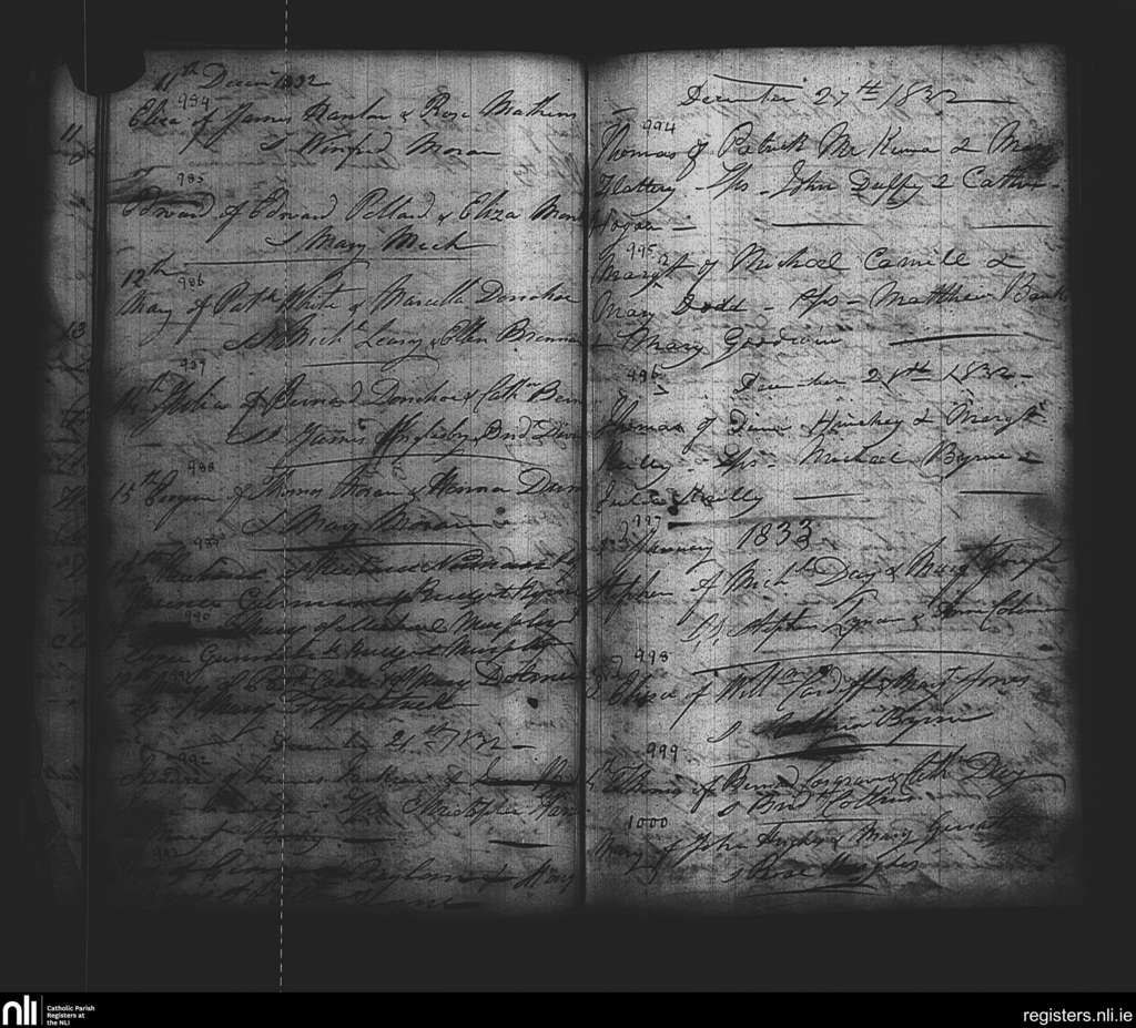 St. Paul's, Dublin city; County of Dublin; Archdiocese of Dublin. Baptisms, Dec. 1832 to Jan. 1833