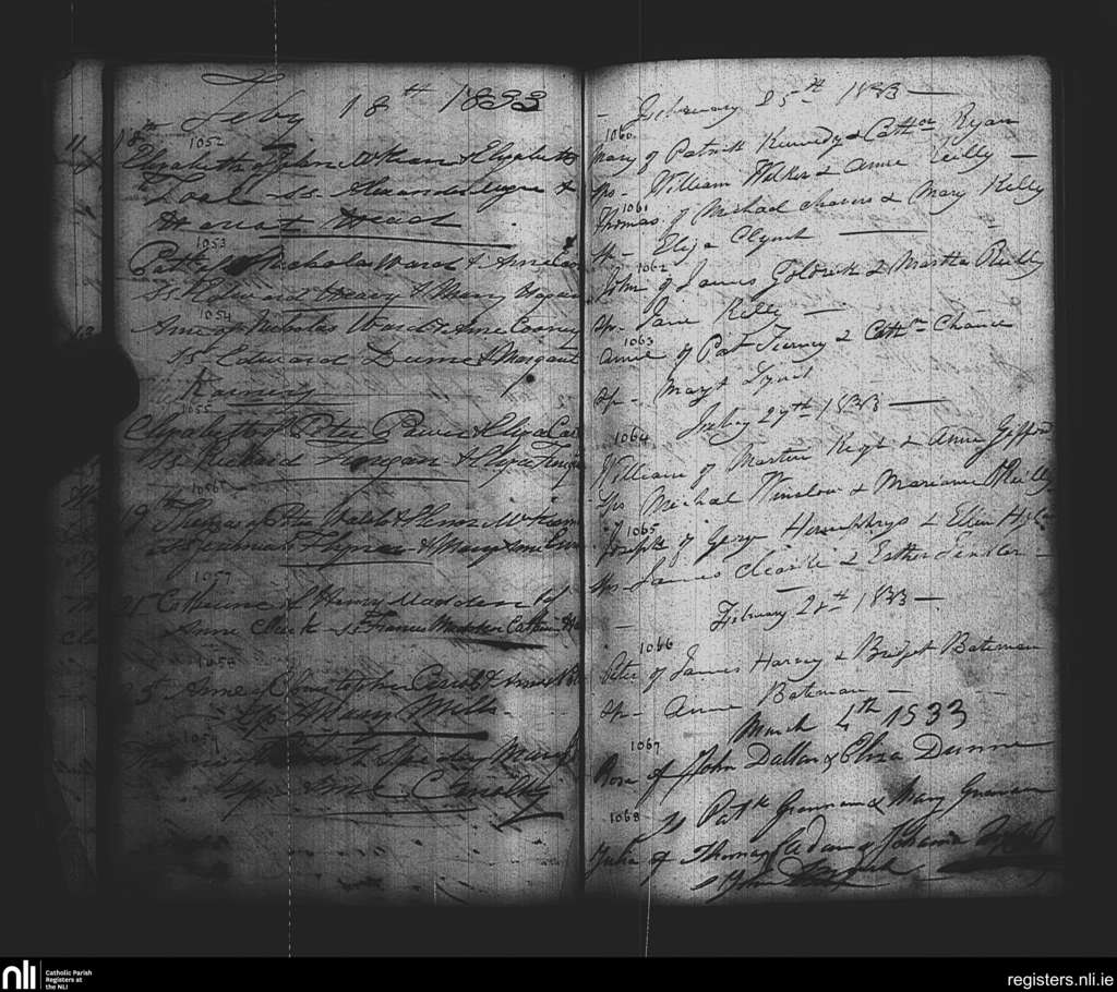 St. Paul's, Dublin city; County of Dublin; Archdiocese of Dublin. Baptisms, Feb. 1833 to Mar. 1833