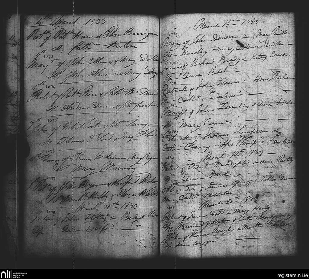 St. Paul's, Dublin city; County of Dublin; Archdiocese of Dublin. Baptisms, Mar. 1833