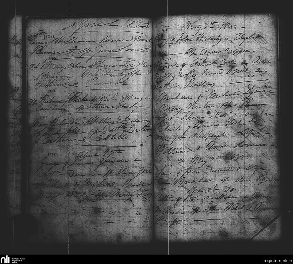 St. Paul's, Dublin city; County of Dublin; Archdiocese of Dublin. Baptisms, Apr. 1833 to May 1833