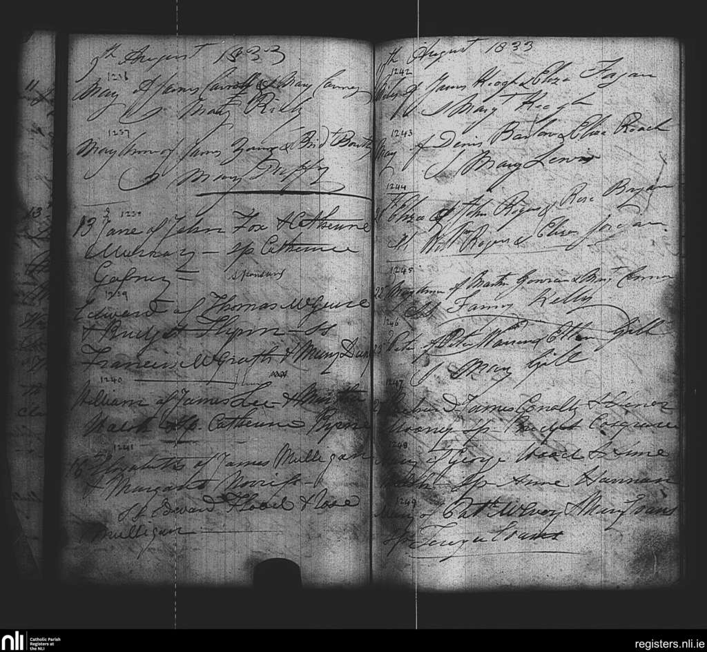 St. Paul's, Dublin city; County of Dublin; Archdiocese of Dublin. Baptisms, Aug. 1833