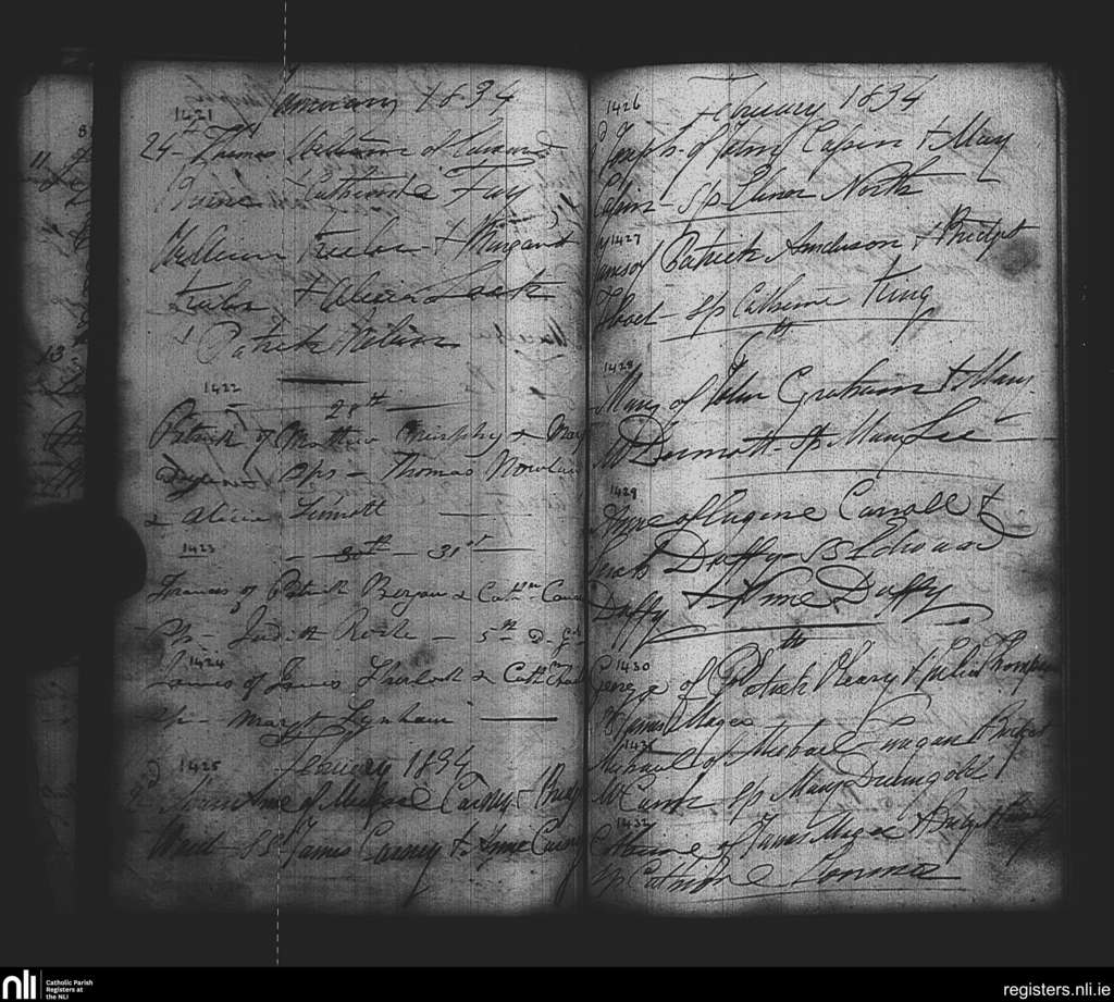 St. Paul's, Dublin city; County of Dublin; Archdiocese of Dublin. Baptisms, Jan. 1834 to Feb. 1834