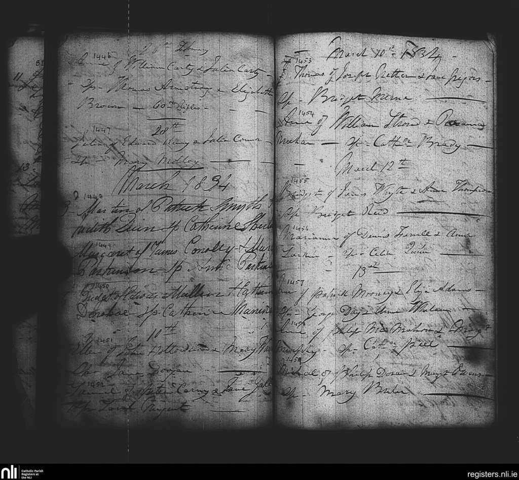 St. Paul's, Dublin city; County of Dublin; Archdiocese of Dublin. Baptisms, Feb. 1834 to Mar. 1834