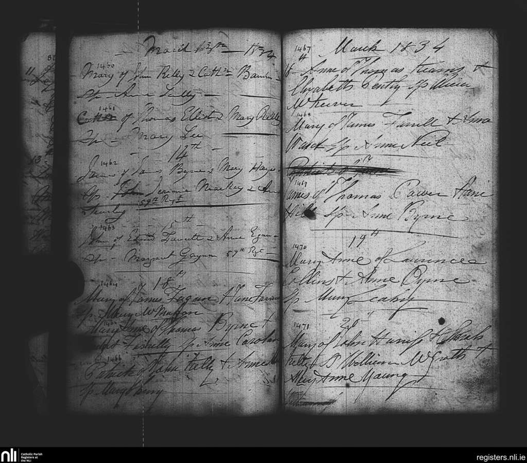 St. Paul's, Dublin city; County of Dublin; Archdiocese of Dublin. Baptisms, Mar. 1834