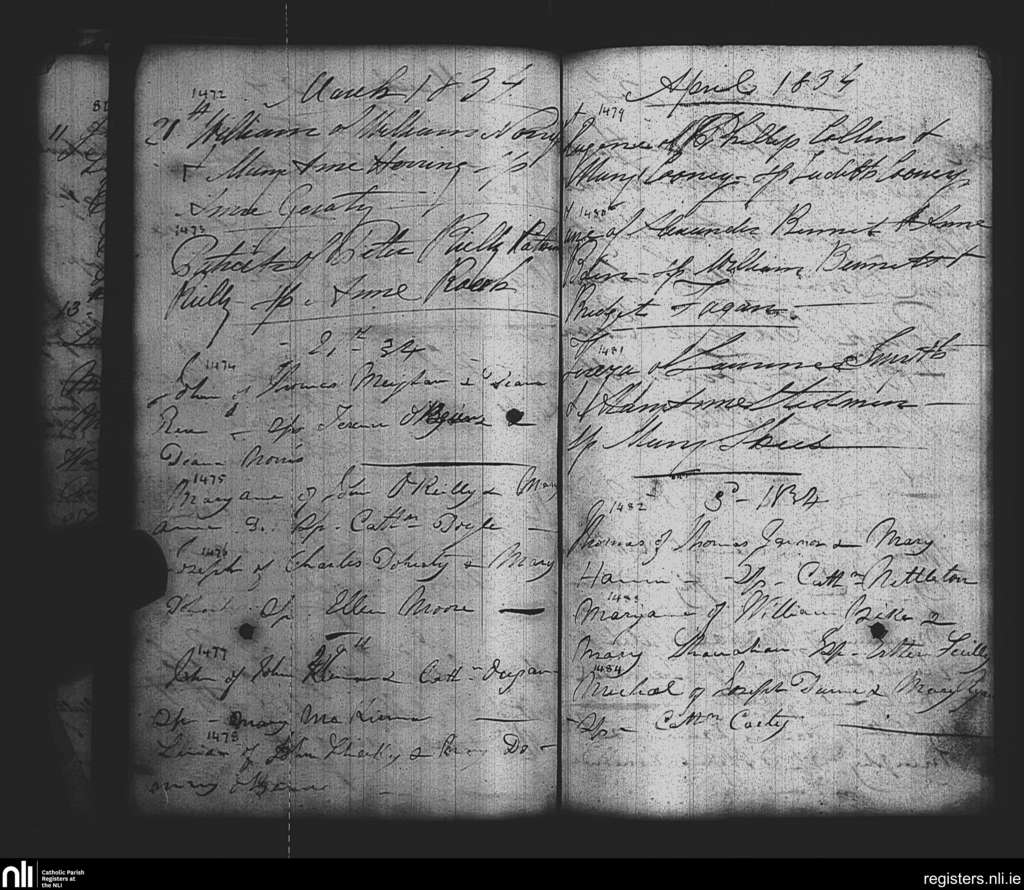 St. Paul's, Dublin city; County of Dublin; Archdiocese of Dublin. Baptisms, Mar. 1834 to Apr. 1834
