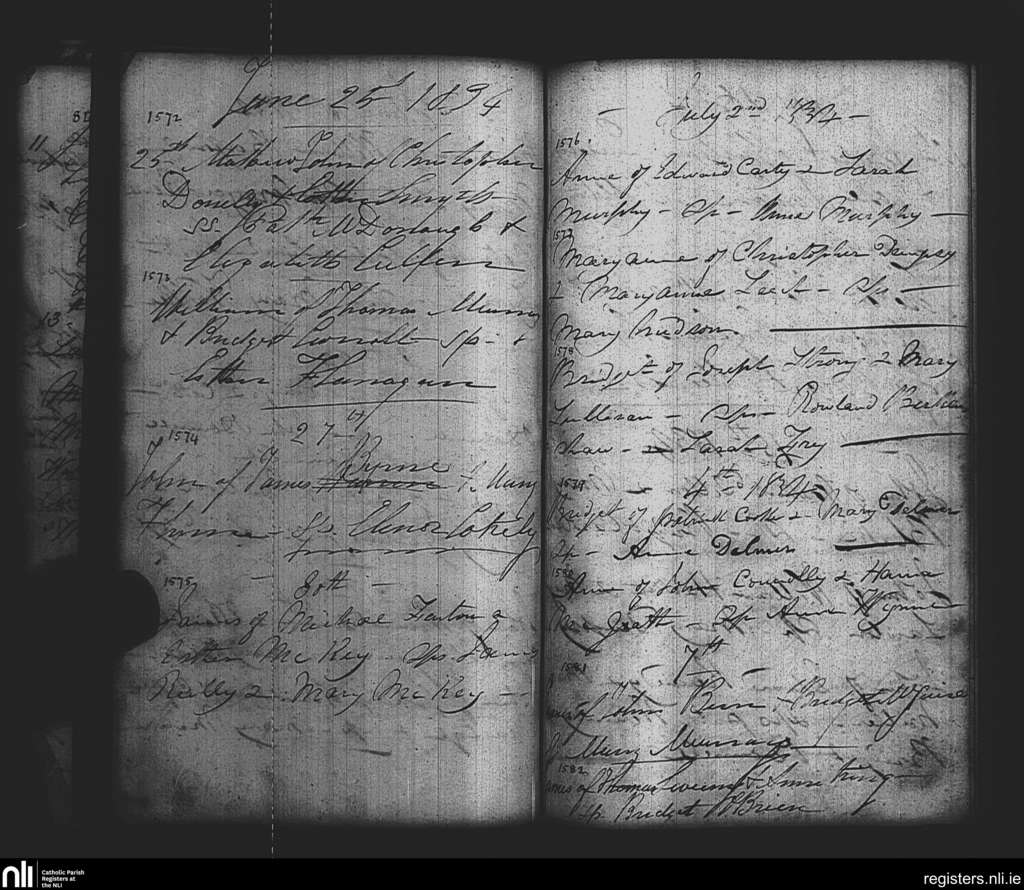 St. Paul's, Dublin city; County of Dublin; Archdiocese of Dublin. Baptisms, June 1834 to July 1834