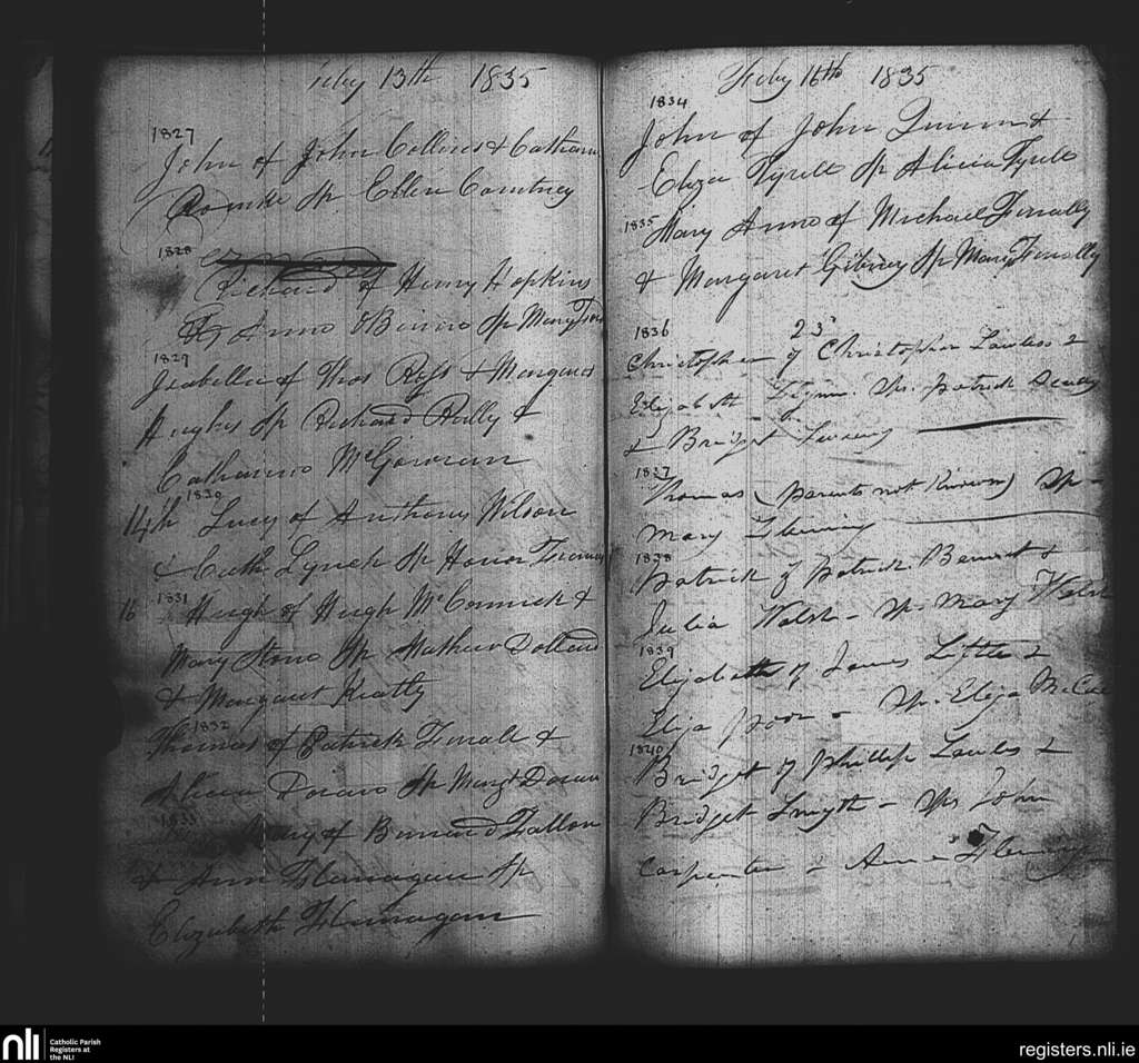 St. Paul's, Dublin city; County of Dublin; Archdiocese of Dublin. Baptisms, Feb. 1835