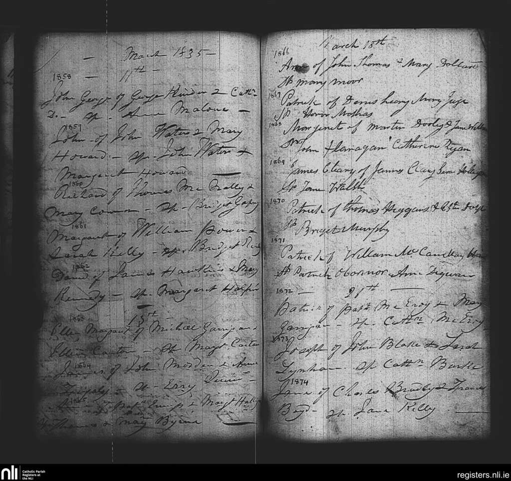 St. Paul's, Dublin city; County of Dublin; Archdiocese of Dublin. Baptisms, Mar. 1835