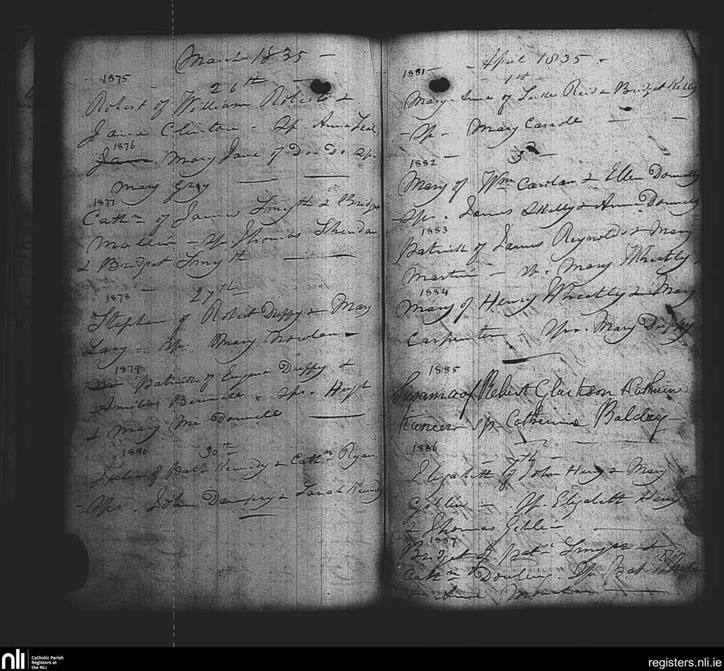 St. Paul's, Dublin city; County of Dublin; Archdiocese of Dublin. Baptisms, Mar. 1835 to Apr. 1835