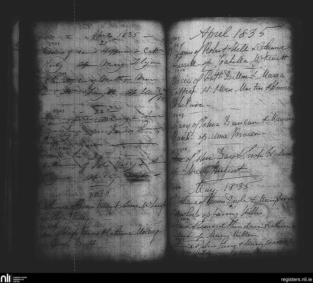St. Paul's, Dublin city; County of Dublin; Archdiocese of Dublin. Baptisms, Apr. 1835 to May 1835