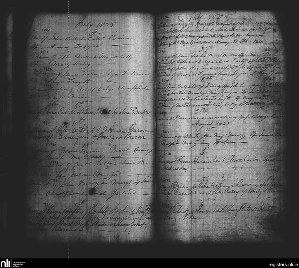 St. Paul's, Dublin city; County of Dublin; Archdiocese of Dublin. Baptisms, July 1835 to Aug. 1835