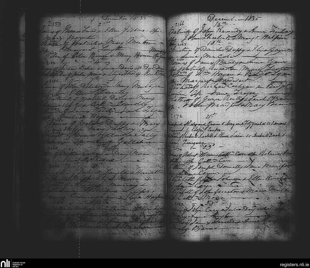 St. Paul's, Dublin city; County of Dublin; Archdiocese of Dublin. Baptisms, Dec. 1835