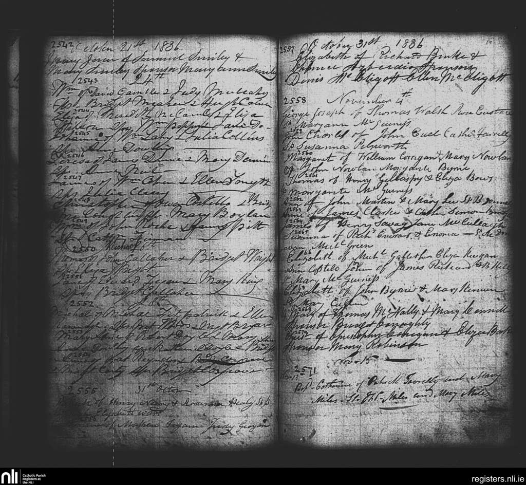 St. Paul's, Dublin city; County of Dublin; Archdiocese of Dublin. Baptisms, Oct. 1836 to Nov. 1836