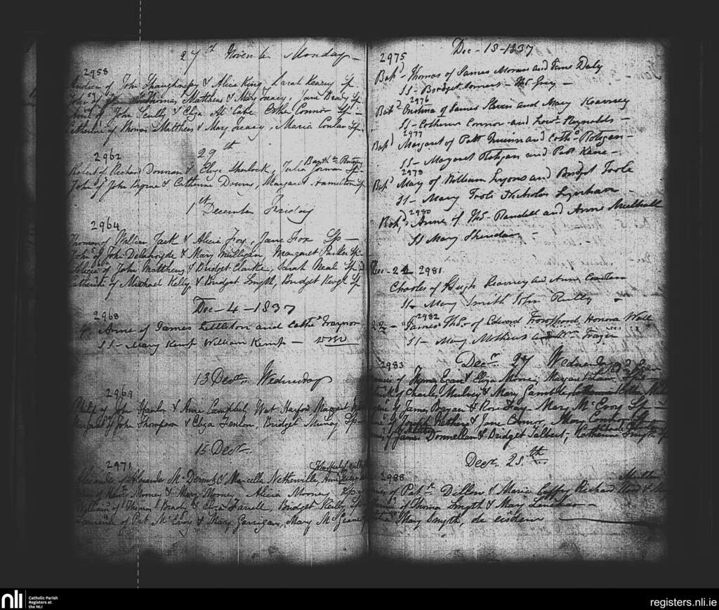 St. Paul's, Dublin city; County of Dublin; Archdiocese of Dublin. Baptisms, Nov. 1837 to Dec. 1837