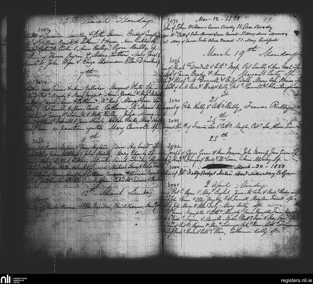 St. Paul's, Dublin city; County of Dublin; Archdiocese of Dublin. Baptisms, Mar. 1838 to Apr. 1838