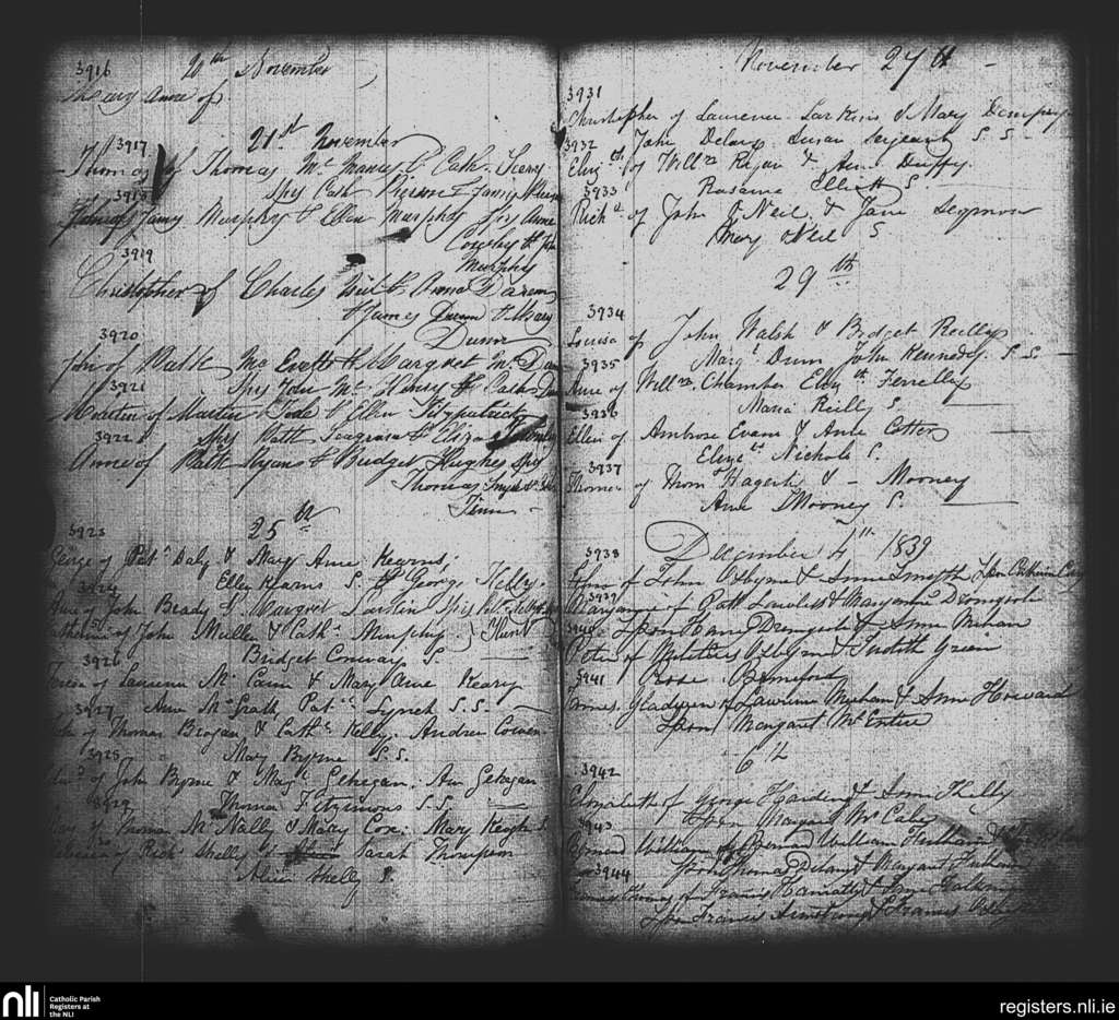 St. Paul's, Dublin city; County of Dublin; Archdiocese of Dublin. Baptisms, Nov. 1839 to Dec. 1839