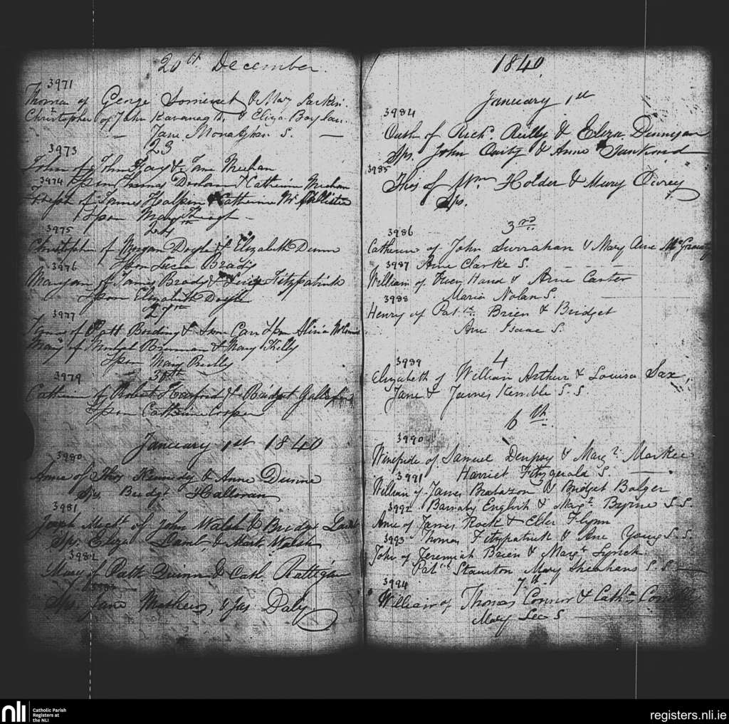 St. Paul's, Dublin city; County of Dublin; Archdiocese of Dublin. Baptisms, Dec. 1839 to Jan. 1840