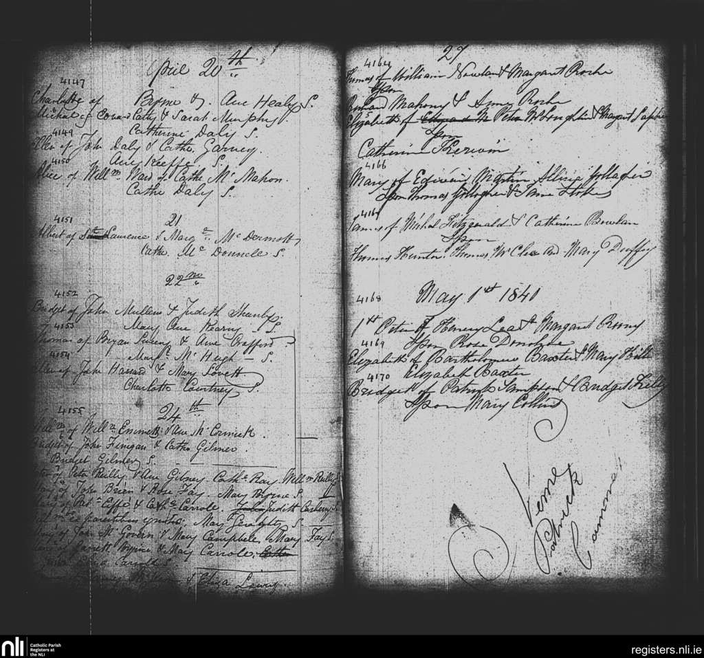 St. Paul's, Dublin city; County of Dublin; Archdiocese of Dublin. Baptisms, Apr. 1840 to May 1840
