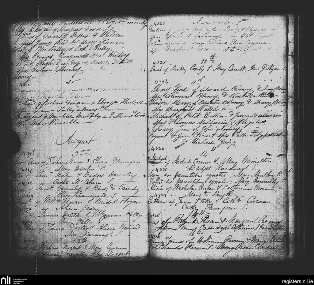 St. Paul's, Dublin city; County of Dublin; Archdiocese of Dublin. Baptisms, July 1840 to Aug. 1840