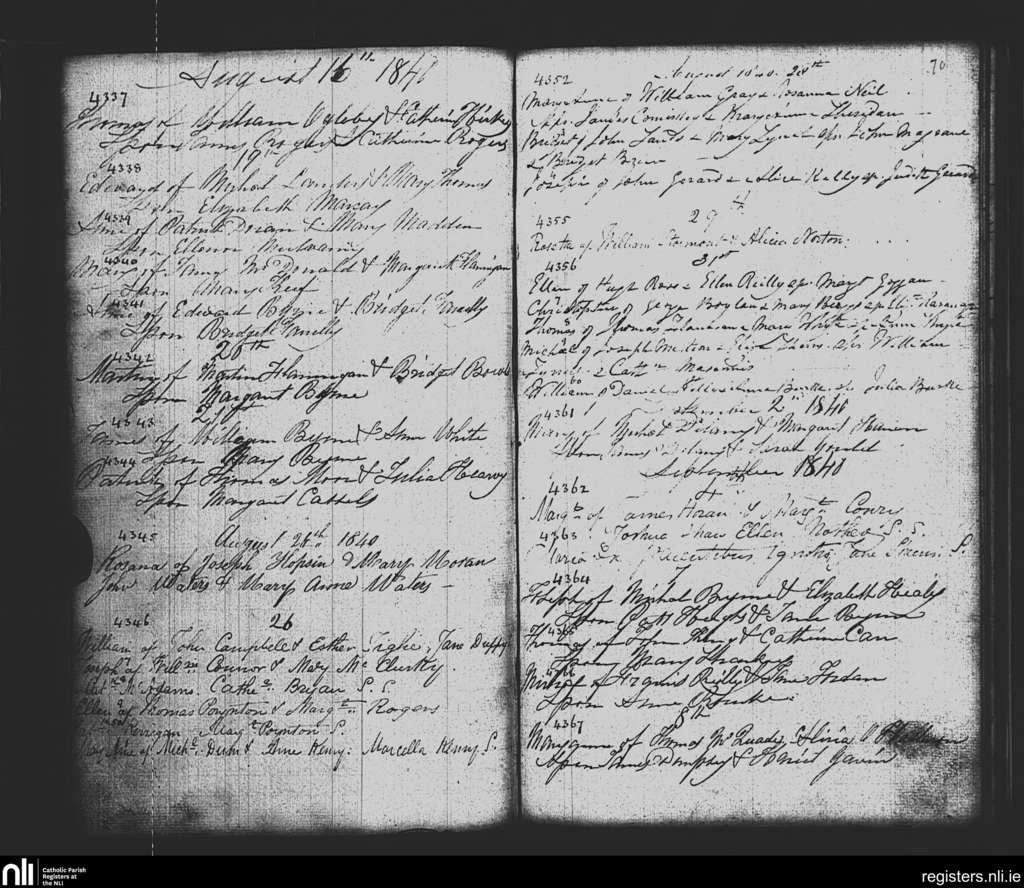 St. Paul's, Dublin city; County of Dublin; Archdiocese of Dublin. Baptisms, Aug. 1840 to Sep. 1840