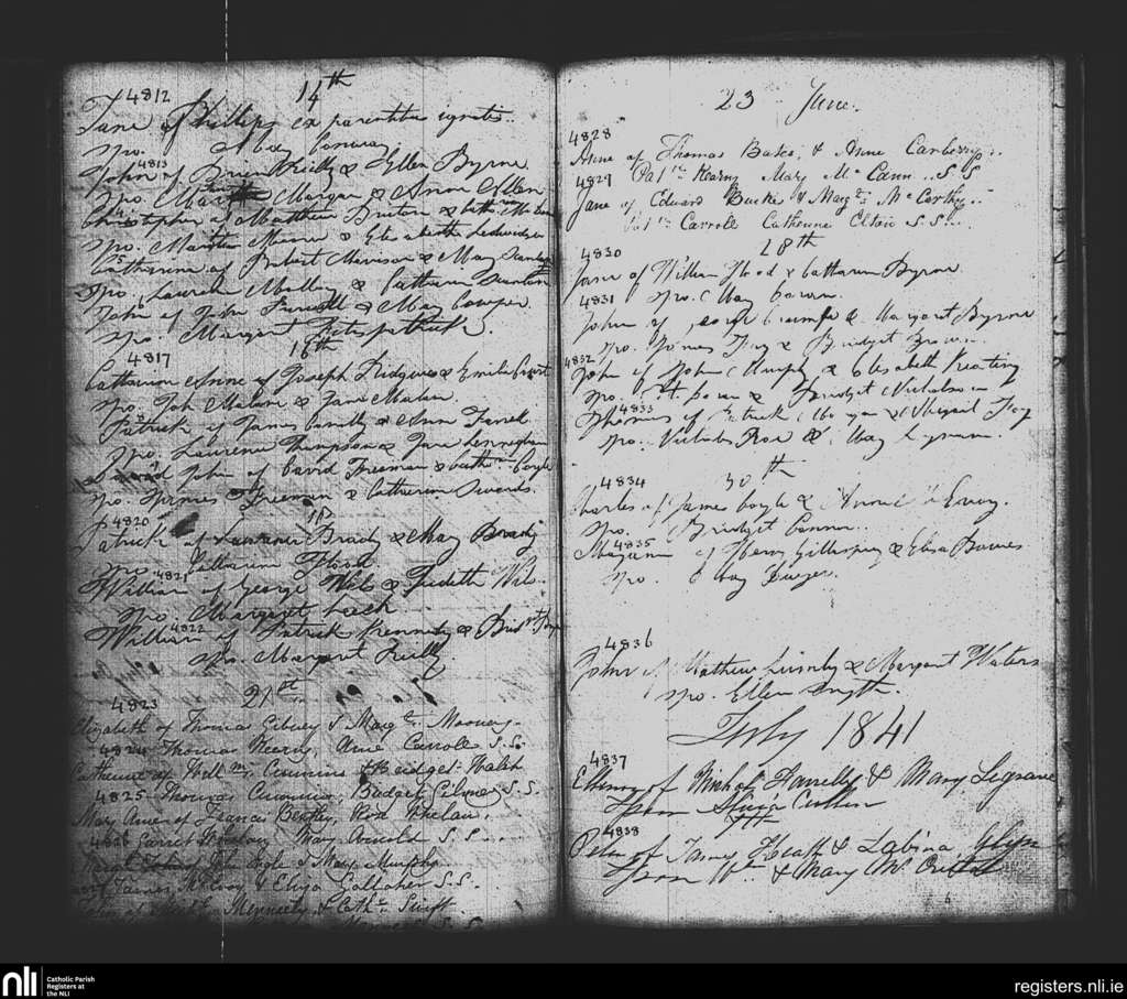 St. Paul's, Dublin city; County of Dublin; Archdiocese of Dublin. Baptisms, June 1841 to July 1841