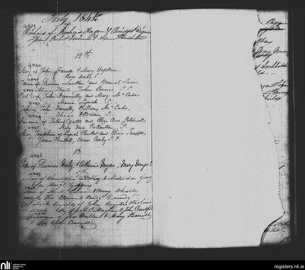 St. Paul's, Dublin city; County of Dublin; Archdiocese of Dublin. Baptisms, July 1841