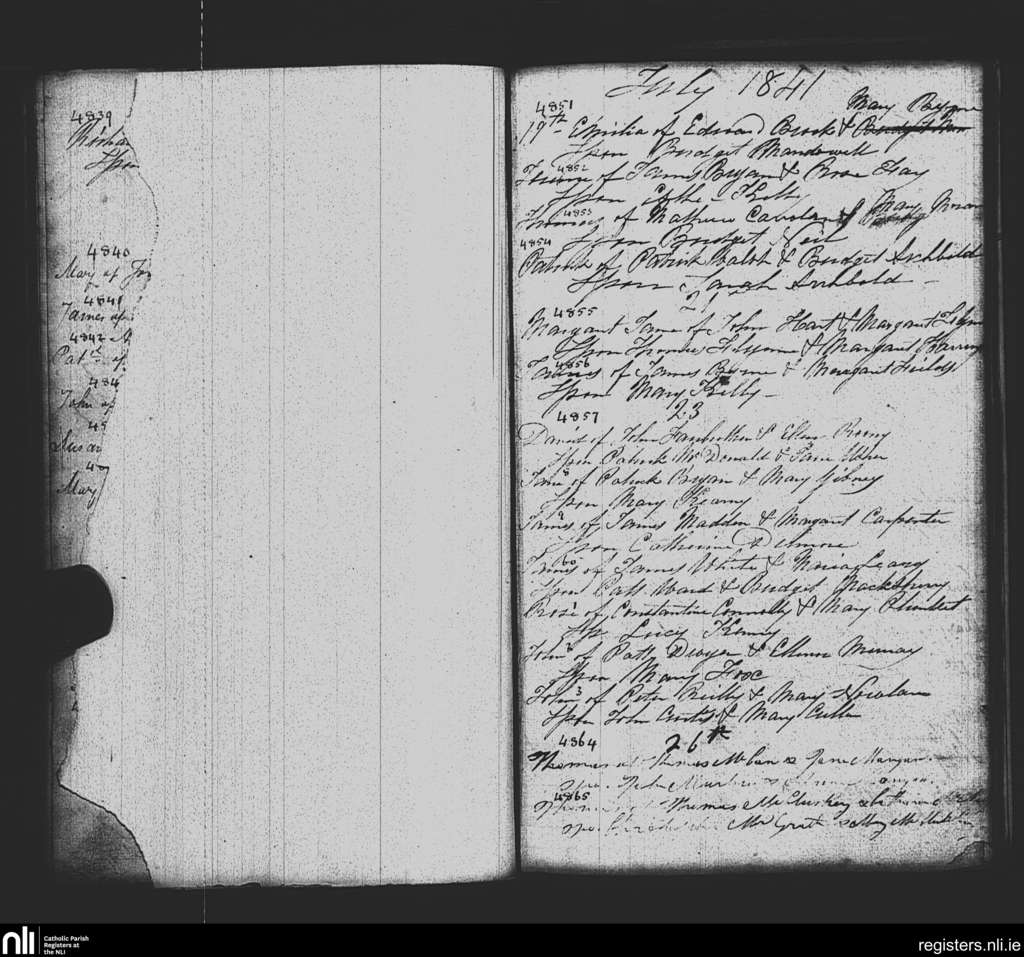 St. Paul's, Dublin city; County of Dublin; Archdiocese of Dublin. Baptisms, July 1841