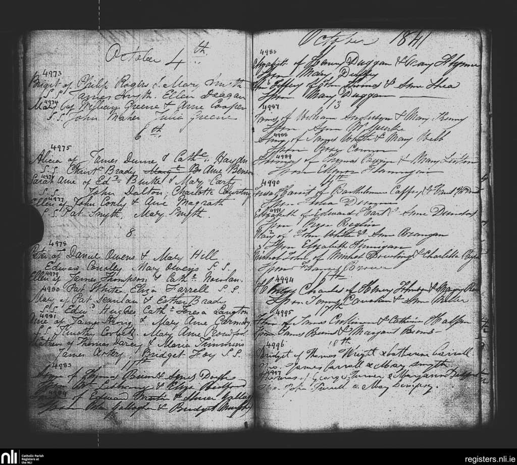St. Paul's, Dublin city; County of Dublin; Archdiocese of Dublin. Baptisms, Oct. 1841