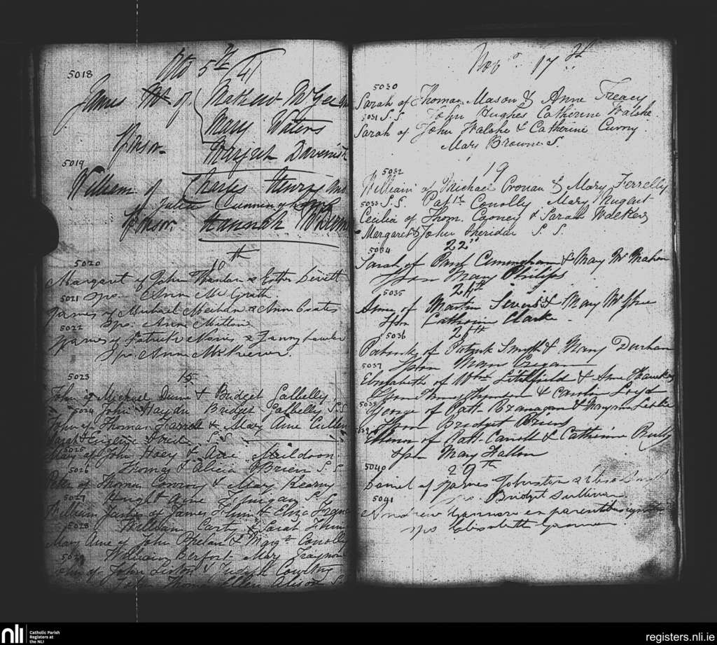 St. Paul's, Dublin city; County of Dublin; Archdiocese of Dublin. Baptisms, Nov. 1841