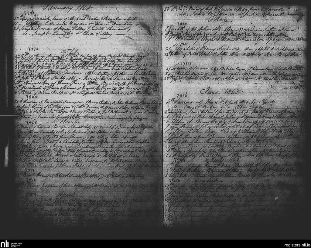 St. Paul's, Dublin city; County of Dublin; Archdiocese of Dublin. Baptisms, Jan. 1848 to Aug. 1848