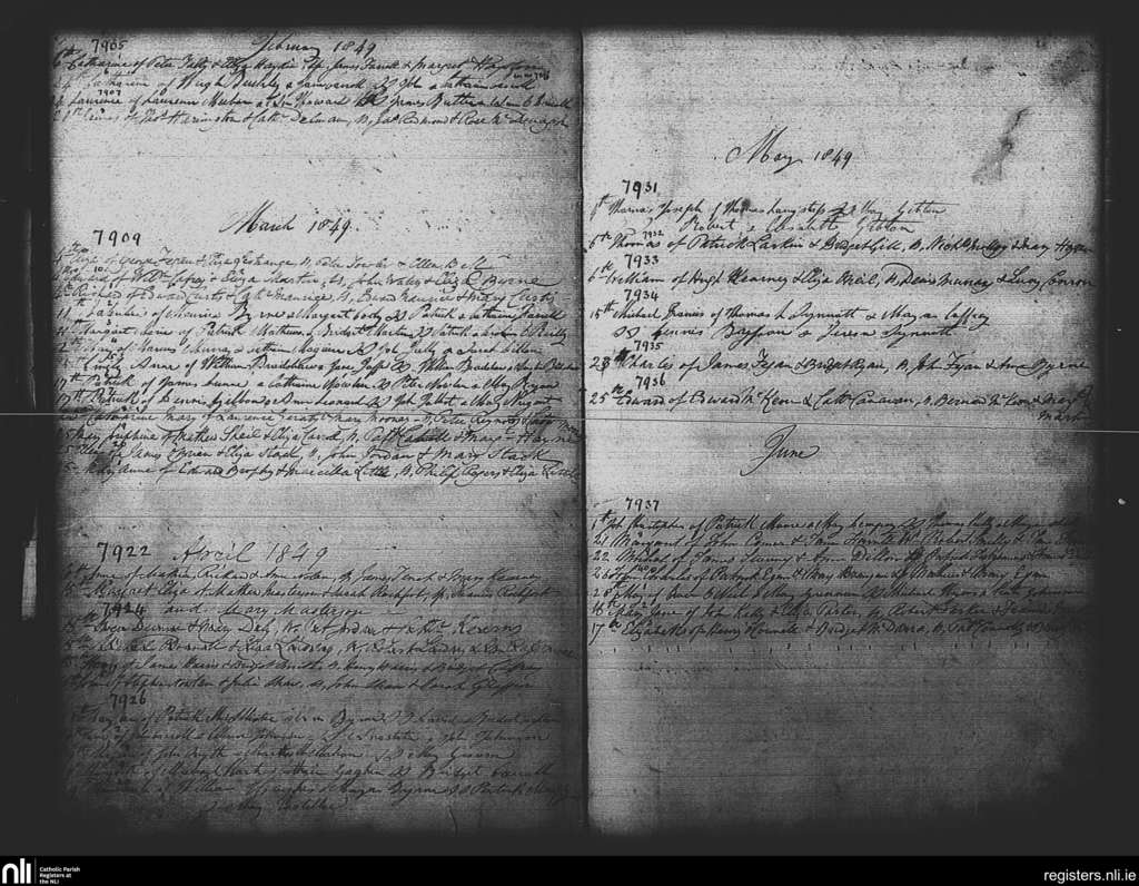 St. Paul's, Dublin city; County of Dublin; Archdiocese of Dublin. Baptisms, Feb. 1849 to June 1849