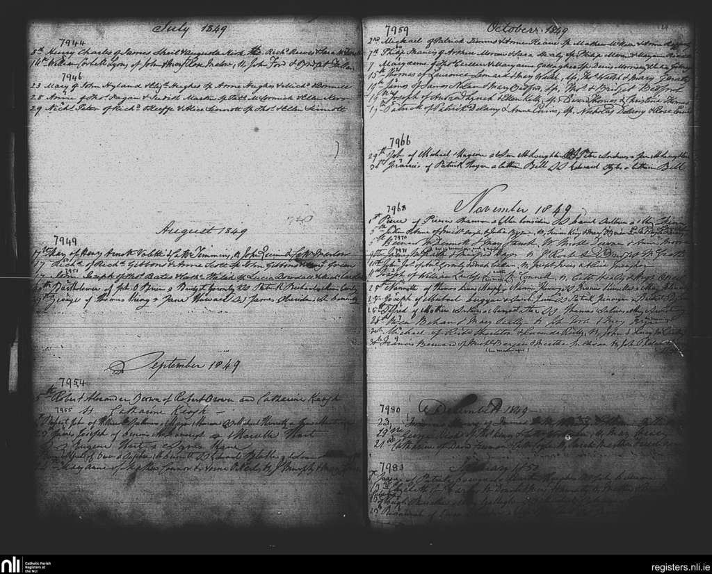 St. Paul's, Dublin city; County of Dublin; Archdiocese of Dublin. Baptisms, July 1849 to Jan. 1850