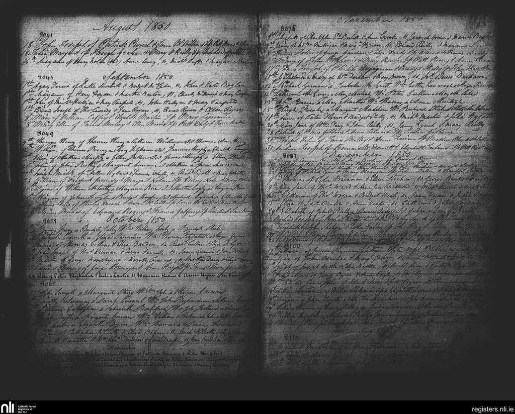 St. Paul's, Dublin city; County of Dublin; Archdiocese of Dublin. Baptisms, Aug. 1850 to Feb. 1851