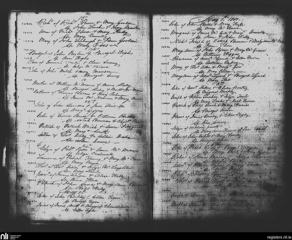St. Paul's, Dublin city; County of Dublin; Archdiocese of Dublin. Baptisms, Apr. 1850 to May 1850