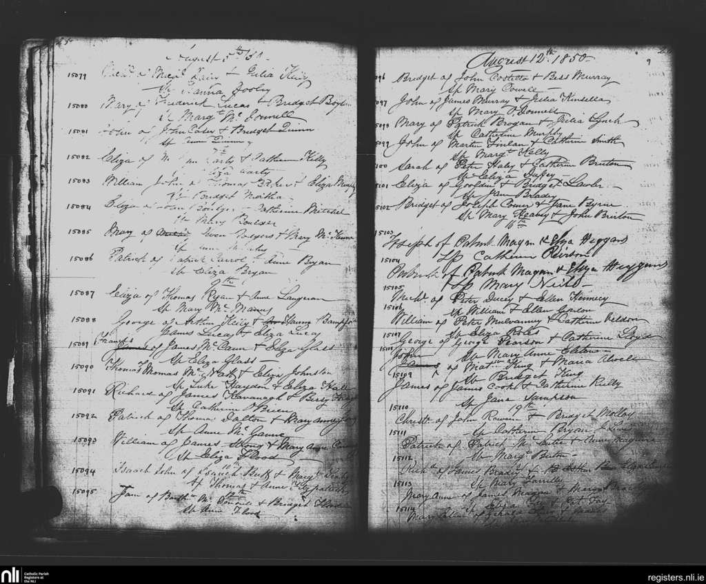 St. Paul's, Dublin city; County of Dublin; Archdiocese of Dublin. Baptisms, Aug. 1850