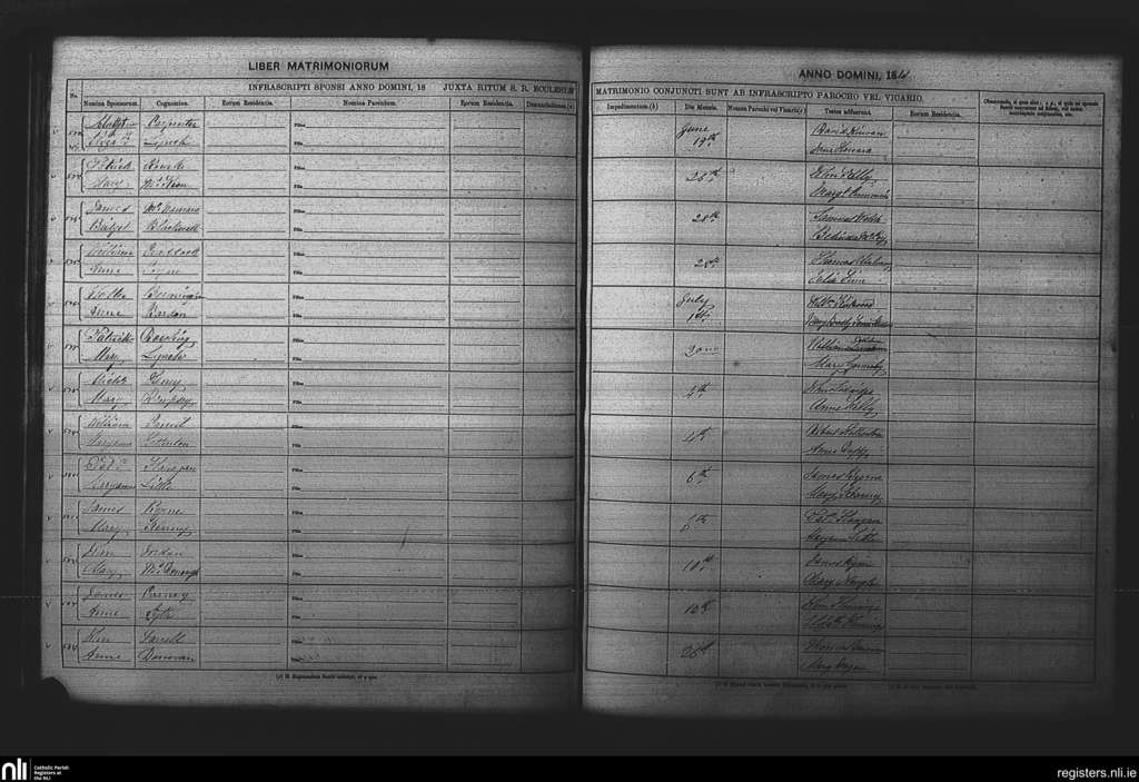 St. Paul's, Dublin city; County of Dublin; Archdiocese of Dublin. Marriages, June 1841 to July 1841