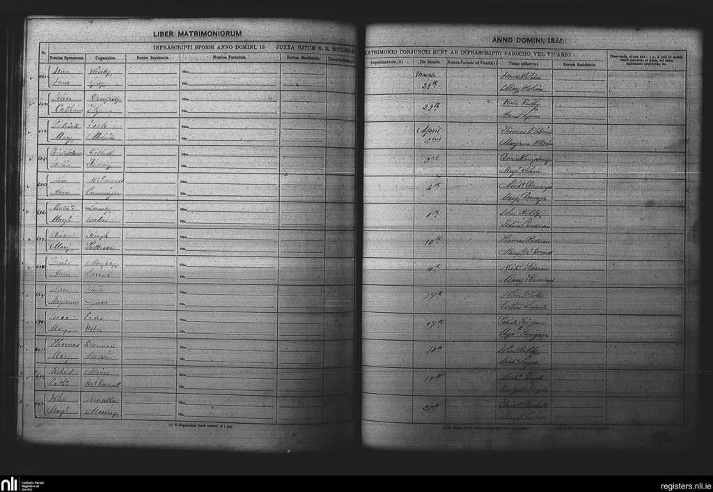 St. Paul's, Dublin city; County of Dublin; Archdiocese of Dublin. Marriages, Mar. 1842 to Apr. 1842