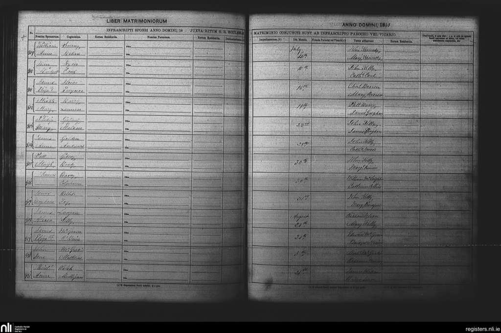 St. Paul's, Dublin city; County of Dublin; Archdiocese of Dublin. Marriages, July 1843 to Aug. 1843