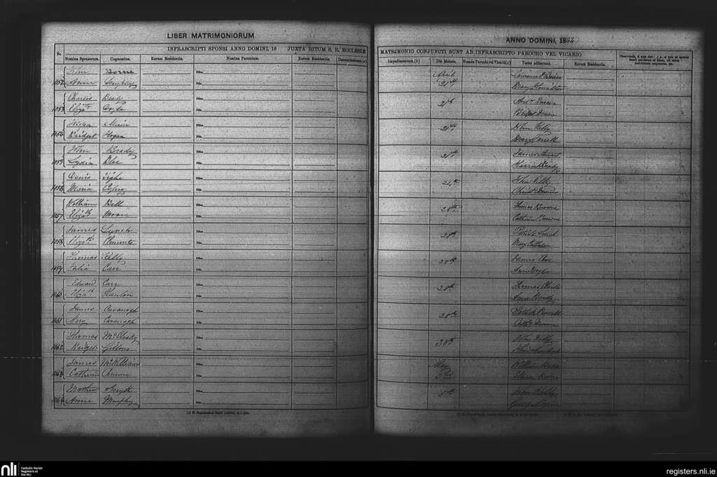 St. Paul's, Dublin city; County of Dublin; Archdiocese of Dublin. Marriages, Apr. 1844 to May 1844