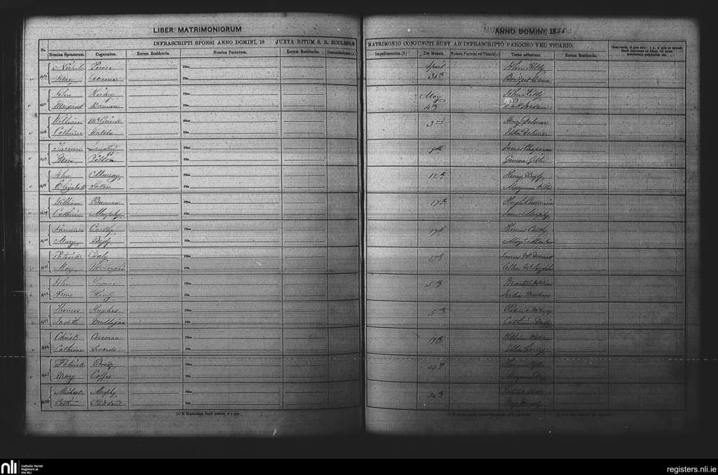 St. Paul's, Dublin city; County of Dublin; Archdiocese of Dublin. Marriages, Apr. 1846 to May 1846