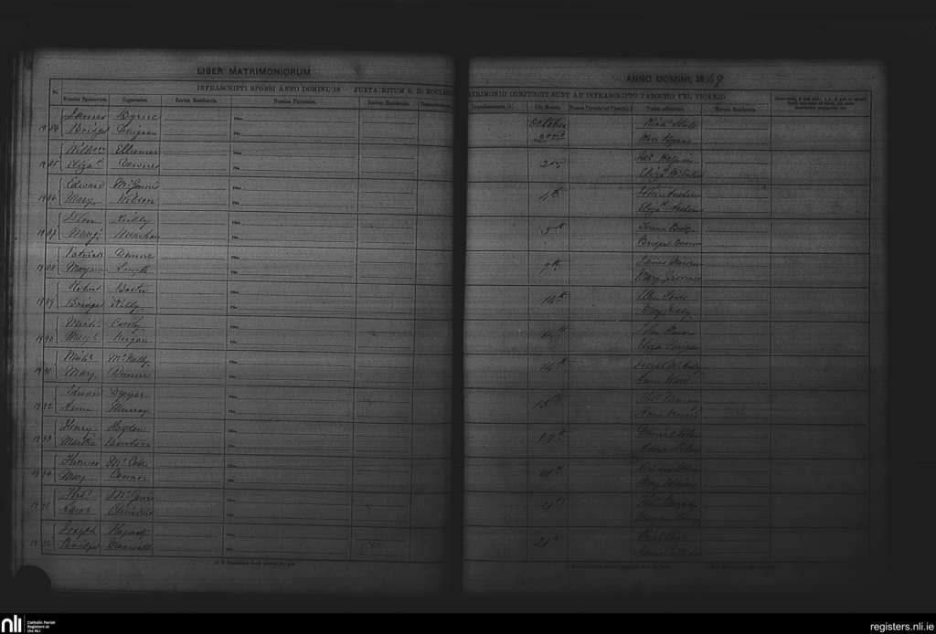 St. Paul's, Dublin city; County of Dublin; Archdiocese of Dublin. Marriages, Oct. 1849