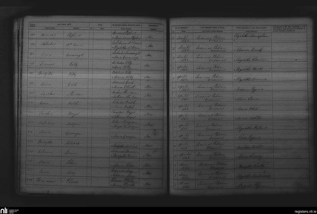 St. Paul's, Dublin city; County of Dublin; Archdiocese of Dublin. Baptisms, Mar. 1862 to May 1862